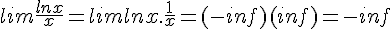 lim ln x/x = lim ln x/ 1/x = -oo/+oo =H= lim -x²/x = -x = -oo