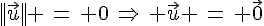 En revanche, il existe le vecteur nul, généralement noté ; si un vecteur a une norme nulle, alors il est le vecteur nul ( ).