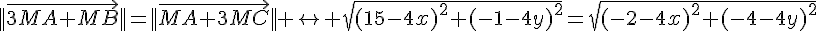 1°) a) Soit le point M(x;y). Calculer en fonction de x et de y les coordonnées du vecteur 3MA+MB puis celles du vecteur MA+3MC