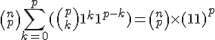 Bonjour, En fait c'est le binome de newton tout simplement ! (1 + 1)^p c'est comme (a+b)^p et la tu appliques le binome de newton .