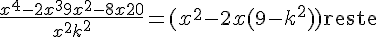 En remplaçant k dans le reste, j'ai bien vu que le polynôme était divisible en x²+k² si k=+-2