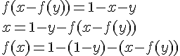 Je me suis mis doucement aux équations fonctionnelles pendant les vacances et j'ai trouvé pas mal d'exemples en fouillant dans le forum et sur le net, mais je vous poste ce message pour savoir si vous en avez a me proposer pour que je me fasse la main comme ca on pourra essayer de résoudre ca ensemble.