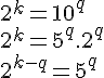 Après avoir vu que q=k=0 est solution, on suppose par exemple que k>q (on fera l'inverse après si tu veux):