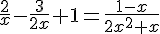 a. 2÷x - 3÷2x+1 = 1-x ÷ 2x²+x