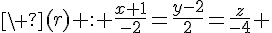Bon, on choisit un point sur la droite .. par exemple, , alors l'équation de la droite passant par , et de vecteur directeur est : ...