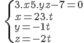 Le point intersection du plan et de la droite est le point qui satisfait le système d'équations suivant :