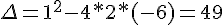 Je determine ensuite le discriminant soit delta = b ² - 4ac = (-1)² - 4 x 2 x (-6) soit 49