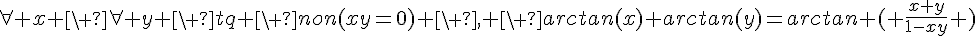 Par continuité de la fonction qui à y associe arctan(x)+arctan(y), on a en faisant tendre y vers, que: