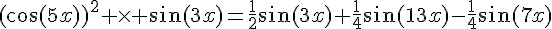bonjour j'ai besoin de votre aide svp pour cette exo merci d'avance ! je dois linéariser p(x)=cos²(5x)sin(3x) mais je ne sais pas par ou commencer avec les formules de moivre et euler ?