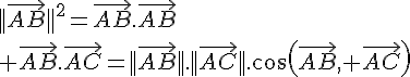 (où ||AB|| désigne la norme , donc la longueur du vecteur AB).Et on utilise également les propriétés de distributivité du produit scalaire.