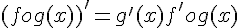 Salut, tu as une formule qui te donne : fog(x) <=> f(g(x)) Là, tu as g(x) = -x Donc la dérivée de g(x) est ... ?