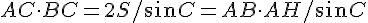 S = 1/2AC*BC*sin A avec S l'aire du triangle ABC, d'où AC*BC = 2S/sin A.