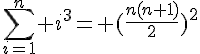 Ensuite tu sommes toutes les égalités et tu vois apparaître ce qu'il faut !! Par contre, il faut avoir précédemment démontré la somme 1+2+...+n (ou alors la démontrer dans la foulée).