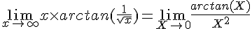 Si c'est possible sans passer par les DL, merci de m'aiguiller, parceque j'ai essayé les changments de variable, et de remplacer arctan(1/u), sachant que x est positif, mais je n'arrive à rien