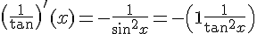 Cliquez pour afficherFacil, on pose 1/tan(x) = cos(x)/sin(x) = forme u'/v.......