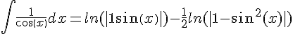 Donc pour int(1/cos(x)), se référer à int(1/sin(x)) par exemple.