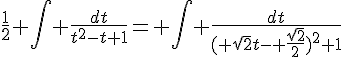 Je passe de t²-t+1 à (t-1/2)²+1/2, puis je multiplie et simplifie par 2 dans l'intégrale, et par la même occasion, une erreur effroyable