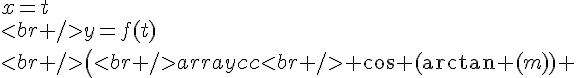 Effectuons maintenant sur K une translation t(0,-b) de telle sorte d'obtenir le repère K' (α,β) dans lequel nous avons les équations pour la courbe C et la droite D respectivement β=F(α) et β=mα+b. Étant donné que la translation ne s'est faite que le long des ordonnées (autrement dit, les repères K et K' sont parallèles avec leur axes y et β confondus), on peut réécrire pour C et D β = F(x) = f(x)+b et β = mx+b. Or, il s'agit là du problème initiale dans lequel il nous était donné F(x) et non pas f(x). Ainsi, nous pouvons écrire f(x) = F(x)-b et remplacer cela dans ton équation. En joignant le -b à -mx plutôt qu'à F(x), c'est comme si nous faisions bel et bien l'étude de ce problème dans K' au lieu de dans K (comme tu l'as fait). Ainsi, on obtient la forme générale de ton équation :