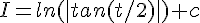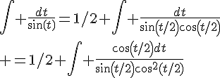 Or, tan(t/2)'=1/(2.cos²(t/2)), on reconnaît donc une intégrale de la forme U'/U, avec U=tan(t/2)=sin(t/2)/cos(t/2), donc:
