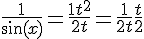 Cliquez pour afficher.Tu as posé t=tan(x/2), tu as donc sin(x)=2t/(1+t²) comme tu l'as dit, et: