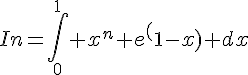 (1-x) étant en exposant. Etablir une relation entre In+1 et In.