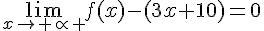 Alors, j'ai trouvé que y=3x+10 est une équation d'une asymptote oblique du type y=ax+b et que donc a=3 et b=10, seulement aprés ca je ne sais plus quoi faire. En espérant recevoir de l'aide ^^