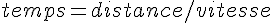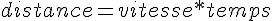 avec : distance en mètres : vitesse en mètres par seconde : temps en seconde