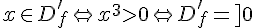 Pour revenir au problème initial, ta dérivée est valable seulement pour x>0 car ta fonction cube est à valeurs danspour x dans