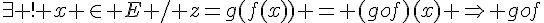 Si g ¤ f injective alors f injective, je commence par démontrer cela d'une part puis d'autre part je démontre que si g ¤ f est surjective, alors g est surjective. [ je vais me passer de la démo mais si vous la désirez je peux la faire.