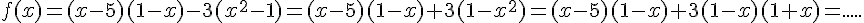 Revois le développement de f(x) = (x-5)(1-x)-3(x²-1). Je ne trouve pas ton résultat pour le numérateur.