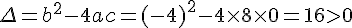 r1 = -0-12/8 = -1.5 et r2= -0+12/8 = 1.5