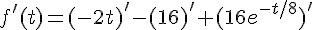 Bonsoir f' -2-2e^(-t/8) je trouve comme toi