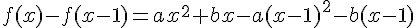 Déterminer les réels a, b et c sachant que f(0) = 0 et que pour tout x de R f(x) - f(x-1) = x
