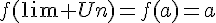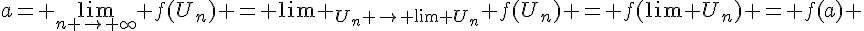 la propiété : Si la suite définie par Un+1=f(Un) et si U converge vers a et si f est continue en a alors f(a)=a