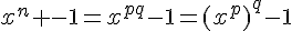 on pourra poser en justifiant n=p*q où p et q sont strictements compris entre 1 et n et utiliser la factorisation : x^n-1=(x-1)(x^(n-1)+x^(n-2)+...+x+1)