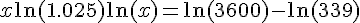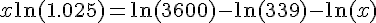 Ah ! Mais cette équation : 1.025x = 3600/(x*339) n'a rien à voir avec celle-la : x + ln(x) = cte.