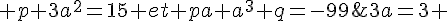 a) déterminer les réels a q p tels que pour tout x, x^3+3x^2+15x-99=(x+a)^3+p(x+a)+q