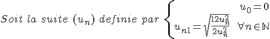 Bonsoir, on vient de ré-entammer le chapitre des suites réelles et j'ai comme quelque problème à résoudre certains genre de questions, en voilà un prototype :