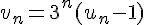 On trouve que vn+1 = 3vn donc (vn) est une suite géométrique de premier terme v0 = 1 et de raison 3 =>