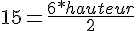 . Ici A=15cm² et base=6cm. On veut déterminer la hauteur finalement. On écrit