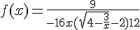 9/{-16x*[Racine(4 - 3/x) - 2] + 12}