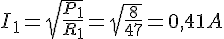R1 supporte donc P1=8W = R1*I1^2 => I1^2 = 8/47