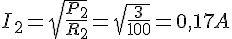 R2 supporte donc P2=3W = R2*I2^2 => I2^2 = 3/100
