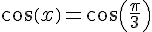 cos(x)=cos(a) x=a+k*2TT OU x=-a+k*2TT (k appartenant à Z)