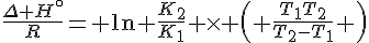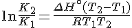 *H°/R = ln(K2/K1) x [(T1 x T2)/(T2 -T1)].
