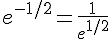 Re : e^–1/2 = 1/√e ???