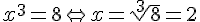 pour x^3 =8 il faut que je fasse 8^3 ?