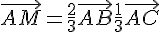 2) Démontrer que AM = 2/3 AB + 1/3 AC