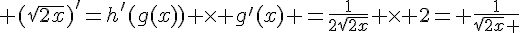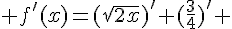 Je sais que la dérivation de (u+v)'=u'+v', mais comment fait-on pour trouver la dérivée de Racine_carrée_de2x+(3/4) ?
