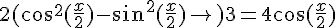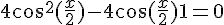 Salut, Transforme cos(x) en cos(x/2) ot obtiens une équation du 2nd degré en cos(x/2)